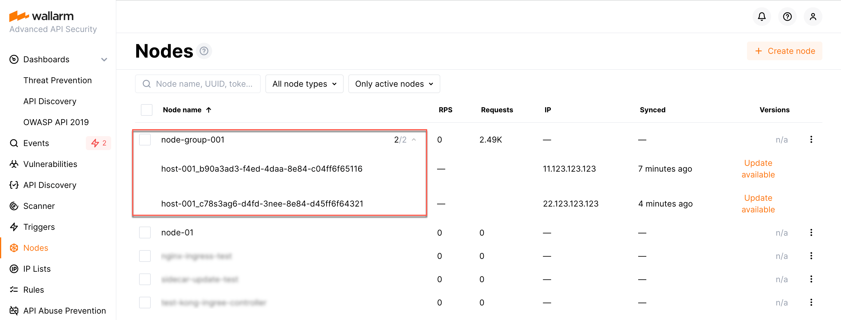 1. Open Wallarm Console → Nodes in the US Cloud or EU Cloud.