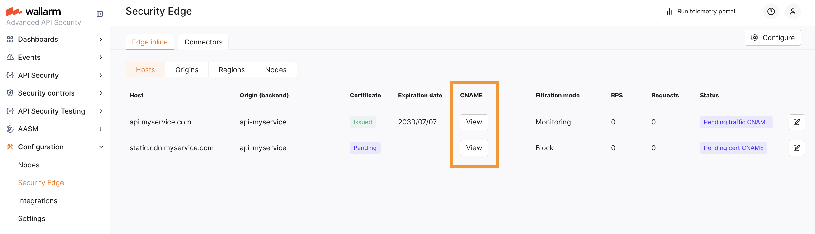 DNS changes can take up to 24 hours to propagate. Wallarm starts the Edge Node deployment once the CNAME records are verified (if needed).
