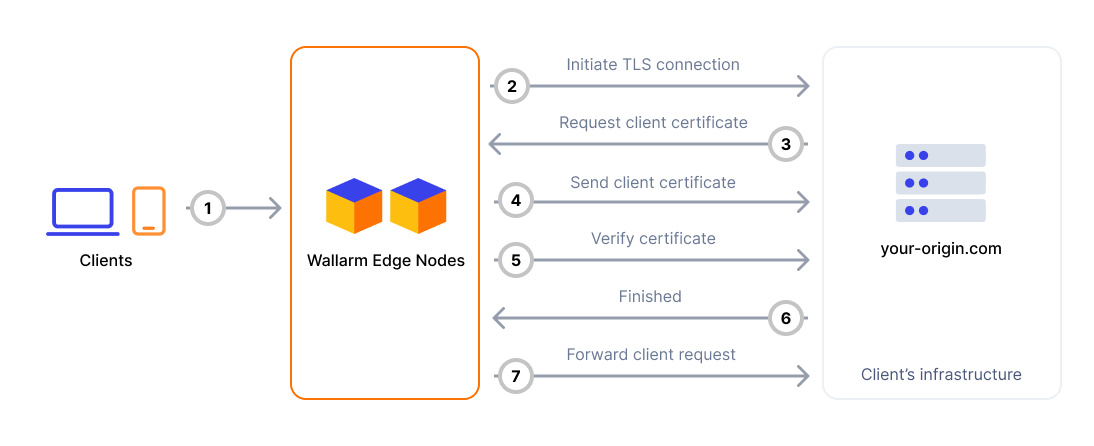 Mutual TLS (mTLS) allows the Wallarm Edge Node to authenticate itself to your origin servers using a client certificate. This ensures that your origins accept requests only from trusted sources.